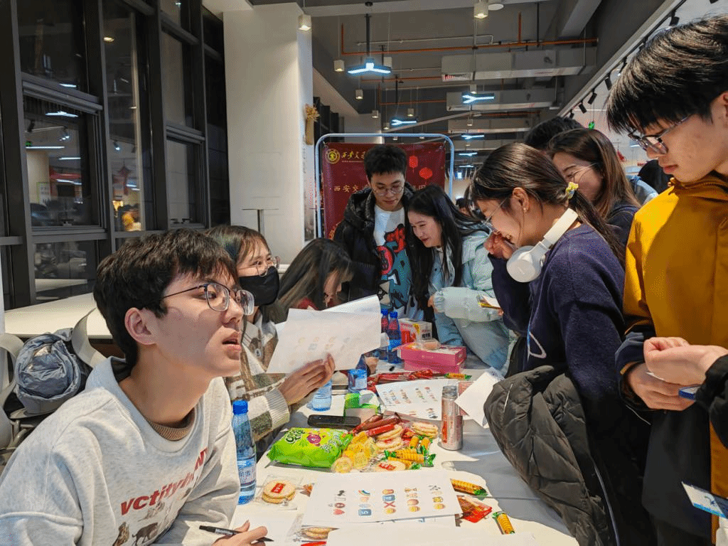活动于12月29日晚在创新港C区食堂朗苑举行,活动游戏吸引了众多同学和留学生的参与。现场热闹非凡,欢声笑语不断。活动以趣味套圈为主线,参与者需按照规则在指定区域内投掷套圈,圈中目标即可获得相应奖品。为了增加活动的趣味性,现场还设置了多个西迁精神的节点展示,让同学们在游戏中了解交大的历史与文化。