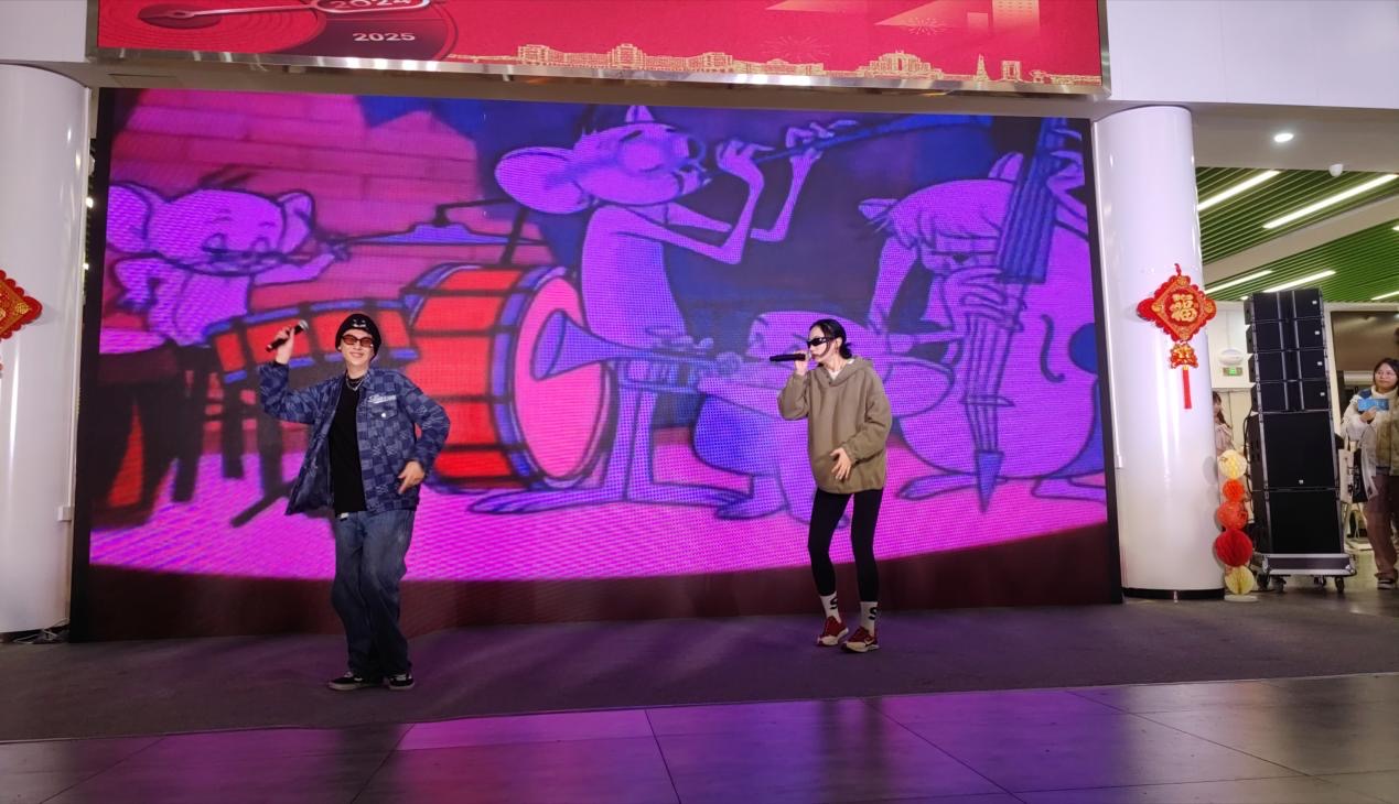 马研宇同学和张煊同学还在游园会主舞台上展现了一场精彩绝伦的唱跳表演《隆里电丝》。他们热情洋溢地舞动身姿,呈现出魅力四溢的舞台效果。观众们欢呼声不断,为他们出色的演出点赞。