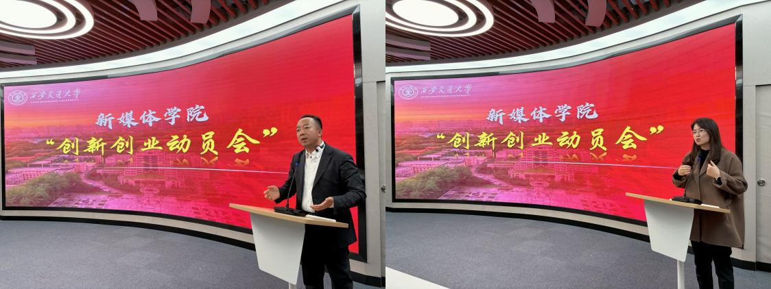 随后,吴锋副书记详细介绍推进学院创新创业基地建设工作。强调创新创业教育是推进"新质生产力"的重要抓手,学院希望能够打造全国一流创新创业教育标杆,培养一批适应新媒体行业发展需要的卓越人才。创新创业基地尤其需要内容创作类、主播类、外语类、运营类的优秀人才助推新业态的发展,学院将为同学们提供各种资源,鼓励同学们积极报名,助力创新创业。