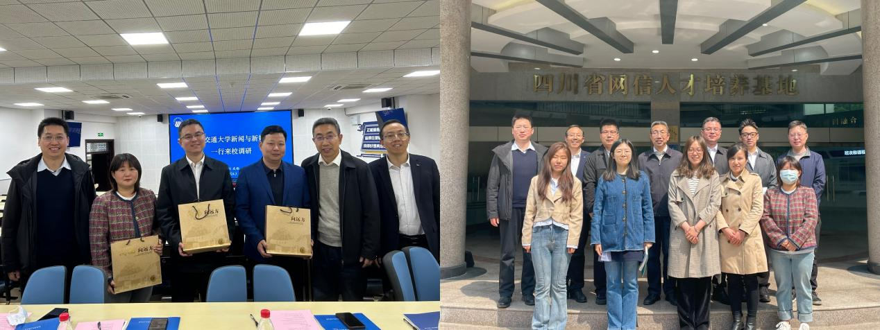 的品牌打造和办学经验,期待四川省网信人才培养基地的品牌传播力进一步提升,杨帆代表学院骨干教师分享和展示了团队开发的国际意见领袖实时监测系统。双方交流气氛热烈。