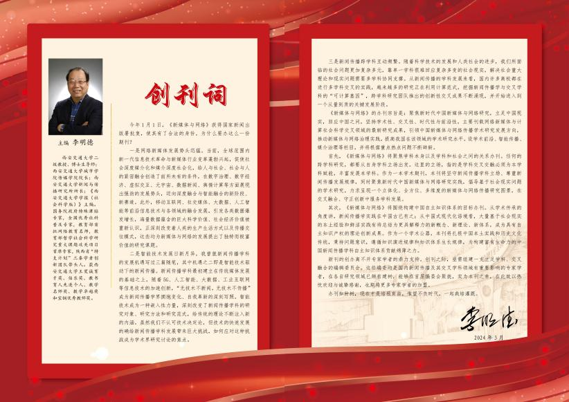 《新媒体与网络》将以习近平新时代中国特色社会主义思想为指导,坚持正确的舆论导向和办刊方向,通过刊载优质内容,不断提升期刊影响;同时坚守新闻传播学科立场、尊重新闻传播发展规律,扎根中国本土实践和历史文化传统,为构建富有生命力的中国新闻传播学科自主知识体系贡献期刊力量。