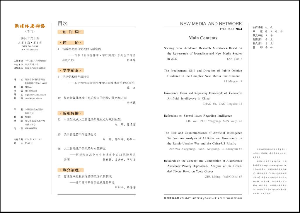 进入新时代,全球范围内新一代信息技术革命与新媒体行业变革蓬勃兴起,促使社会深度媒介化和媒介深度社会化,移动互联网、社交媒体、大数据、人工智能等前沿信息技术与各领域的融合发展,引发各类数据爆发增长。智能技术成为一种嵌入性力量,深刻改变着新闻传播学科的研究对象、研究方法和研究范式,给传统的理论不断注入新的内涵,为新媒体与网络的发展提出了独特而极富价值的研究课题。此外,随着新闻传播跨学科互动频繁,越来越多的研究正在利用计算范式,挖掘新闻传播学与交叉学科的“可计算基因”,跨学科研究团队推出的创新性交叉成果不断涌现,并开始进入到一个从量到质的关键发展阶段。为了给这些创新性研究成果提供一个交流平台,《新媒体与网络》应时而生。