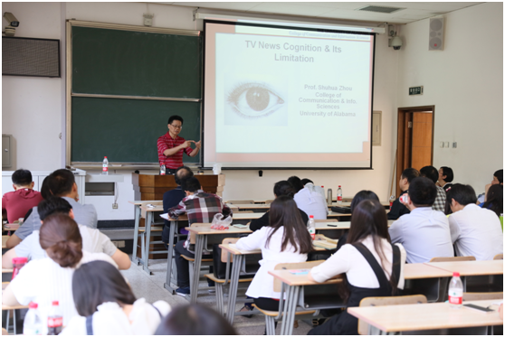 兴庆校区主楼B-302教室举行。本次我们邀请到美国阿拉巴马大学传播与信息科学学院研究生院副院长、教授,国际中华传播协会副会长周树华博士为大家做了“电视新闻认知的限制性”的主题演讲。