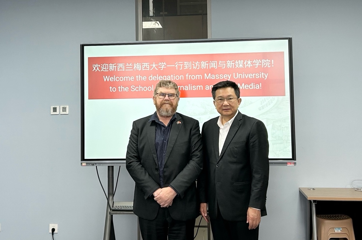 双方讨论内容围绕我院发展历程、智能传播方向与平台建设展开,梅西大学就其学科特色、校区布局及科研设施做了系统介绍,谈及新闻传播领域的优势与合作潜力。此次来访为推动学生多元成长、完善国际培养机制与探索务实合作奠定了坚实基础。