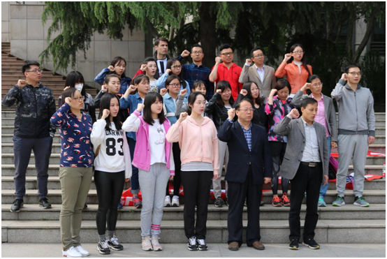 第二阶段申楠老师带领大家在党旗下庄重宣誓重温入党誓词。重温入党誓词就是要不忘初心,是一种心灵的洗涤,是使党员达到自我净化、自我革新、自我提高的重要手段。大家纷纷表示一定要铭记入党誓词,履行党的使命,在工作和学习中发挥模范带头作用,争取作一名让党放心让人民满意的合格党员。