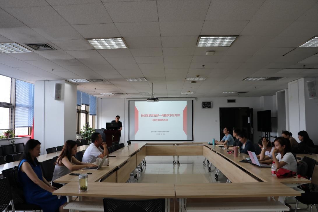 新媒体系党支部与传播学系党支部开展结对共建活动,传达学校第十三次党代会精神。新媒体系党支部和传播学系党支部全体党员参加了会议,陈强教授做了专题解读,会议由新媒体系党支部书记牛耀红和传播学系党支部副书记王威力主持。