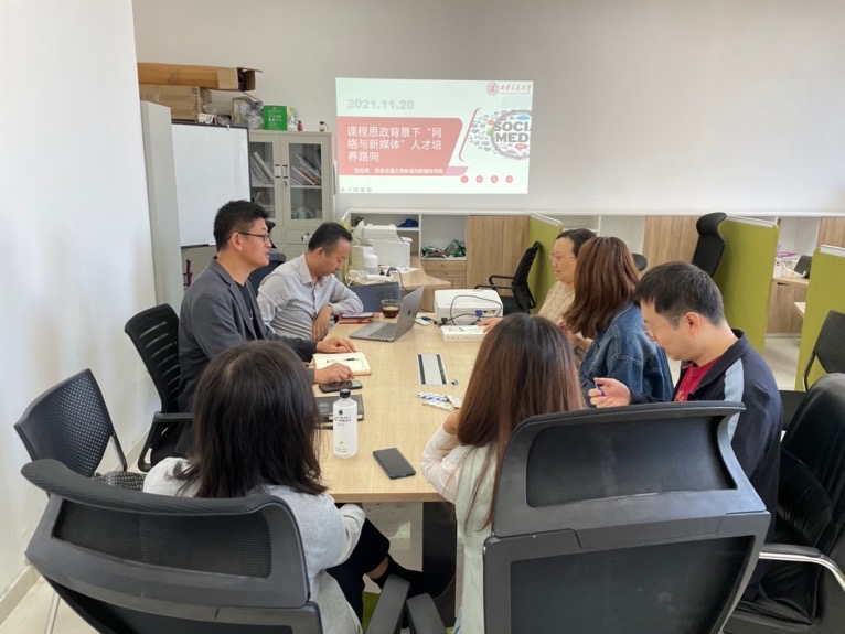 会上,张宏邦副院长结合分管工作,围绕 “课程思政背景下‘网络与新媒体’人才培养路径探索”的主题,与大家进行了分享。报告传达了学校、学院对思政课的重视,以及思政课对培养新时代大学生的重要性。作为教师,将思政课融入日常课堂中,是引导青少年健康发展的必要环节。