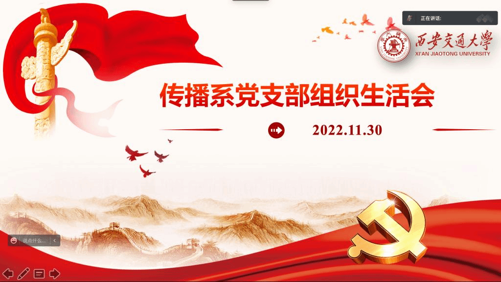 2022年11月30日,传播系党支部通过腾讯会议召开11月党支部组织生活会,支部全体党员及系所全体成员出席会议,会议由支部书记刘婵君主持。