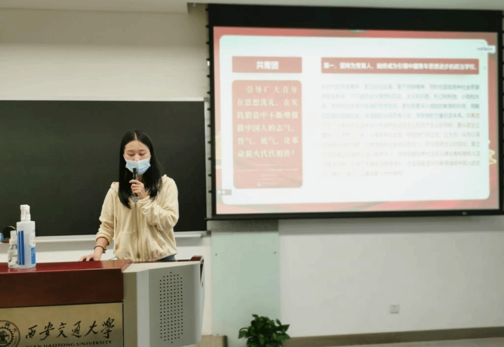 接下来,魏小璇同志展开重要讲话精神的第二部分领学。她表示一百年来,共青团坚定理想、矢志不渝,形成了宝贵经验。而百年征程,塑造了共青团坚持党的领导的立身之本,坚守理想信念的政治之魂,投身民族复兴的奋进之力,扎根广大青年的活力之源。她鼓励同学们成长为有理想、敢担当、能吃苦、肯奋斗的新时代好青年。