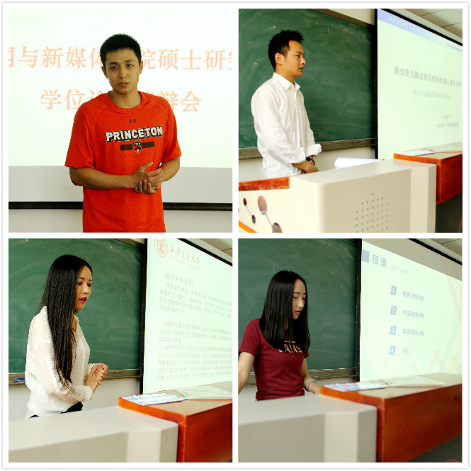 此次答辩的毕业论文内容涉及新闻学、传播学、文学等三种学科,学生们分别从多个角度对新闻现象、新闻舆论引导失范、国家形象国际传播、历史文化传承传播以及其效用等方向进行了研究,并通过PPT向老师、同学们展示并陈述了自己的选题背景、研究思路、理论逻辑支撑、观点与建议以及研究结论。